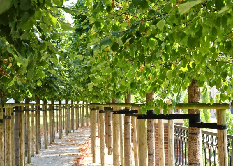 Om de beperkte plantdiepte boven de onderliggende ruimtes aan te pakken en de volwassen bomen voldoende groeiruimte te geven, vond het bouwteam – bestaande uit landschapsarchitecten, de groenaannemer en de gemeente – een innovatieve oplossing. Door de dakbalken strategisch te plaatsen, creëerden ze bijna een meter aan plantdiepte. Ondanks de uitdaging van de beperkte ruimte, leidde het advies van de boomleverancier om drie bomen per tussenruimte te planten tot een succesvolle, bijna gesloten loofgang. Deze groene passage is inmiddels uitgegroeid tot een populaire plek voor een wandeling.
