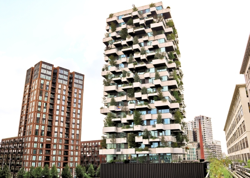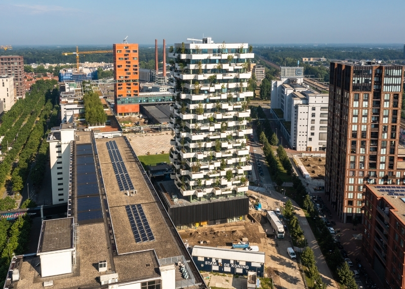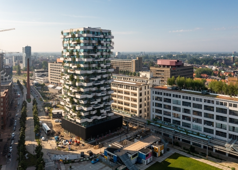 De Trudo Toren: het allereerste verticale bos van Nederland. Dit innovatieve gebouw, waarin in 2021 de eerste bewoners hun intrek namen, biedt ruimte aan maar liefst 125 volwassen bomen, verdeeld over 19 etages. In en aan de toren groeien en bloeien meer dan 5.200 struiken en planten, waaronder klimplanten en hangende planten. Alle bomen, struiken en planten samen absorberen jaarlijks 50.000 kilo CO2 en produceren 13.750 kilo zuurstof.