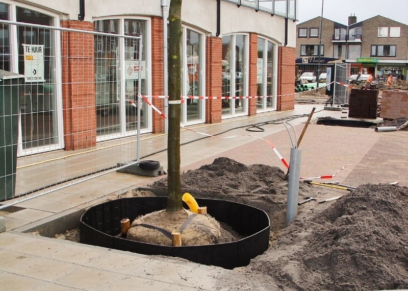 Om wortelopdruk te voorkomen, heeft Gemeente Boekel direct bij de aanplant de wortelgeleidingspanelen van GreenMax toegepast. Het wortelgeleidingssysteem zorgt ervoor dat wortels gecontroleerd naar beneden groeien. Vervolgens groeien ze onder het systeem horizontaal verder, dieper in het plantvak. Hiermee blijft de stabiliteit van de bomen behouden en wordt wortelopdruk voor de lange termijn voorkomen. De installatie werd uitgevoerd door Jos Kanters Groenvoorziening, die met dit project als dealer voor onze wortelgeleidingspanelen werd gecertificeerd.