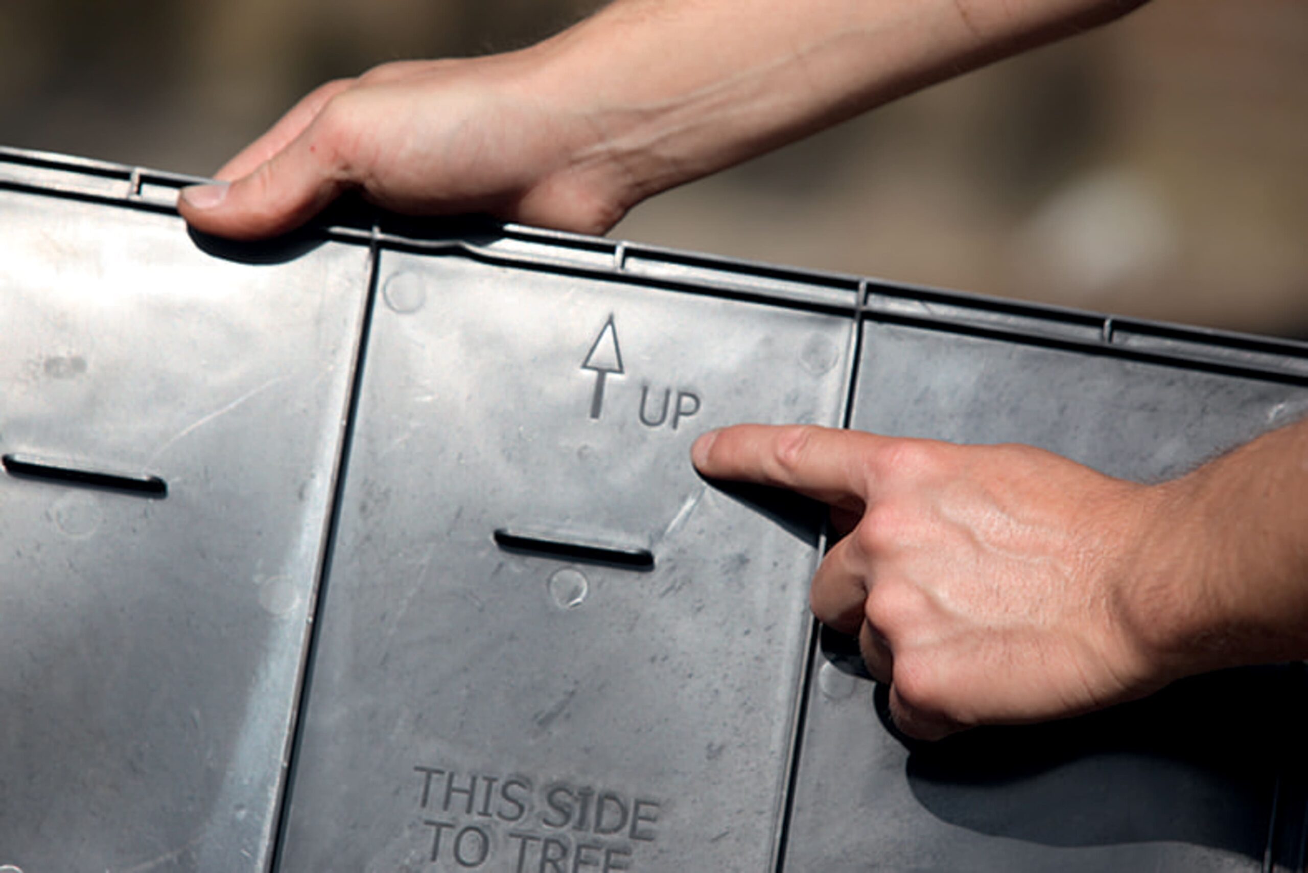 - De zijde met geleidingsribben moet altijd naar de boom worden gericht.